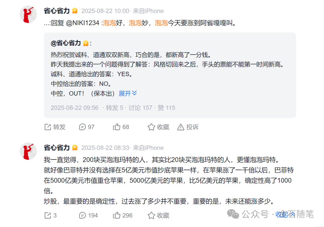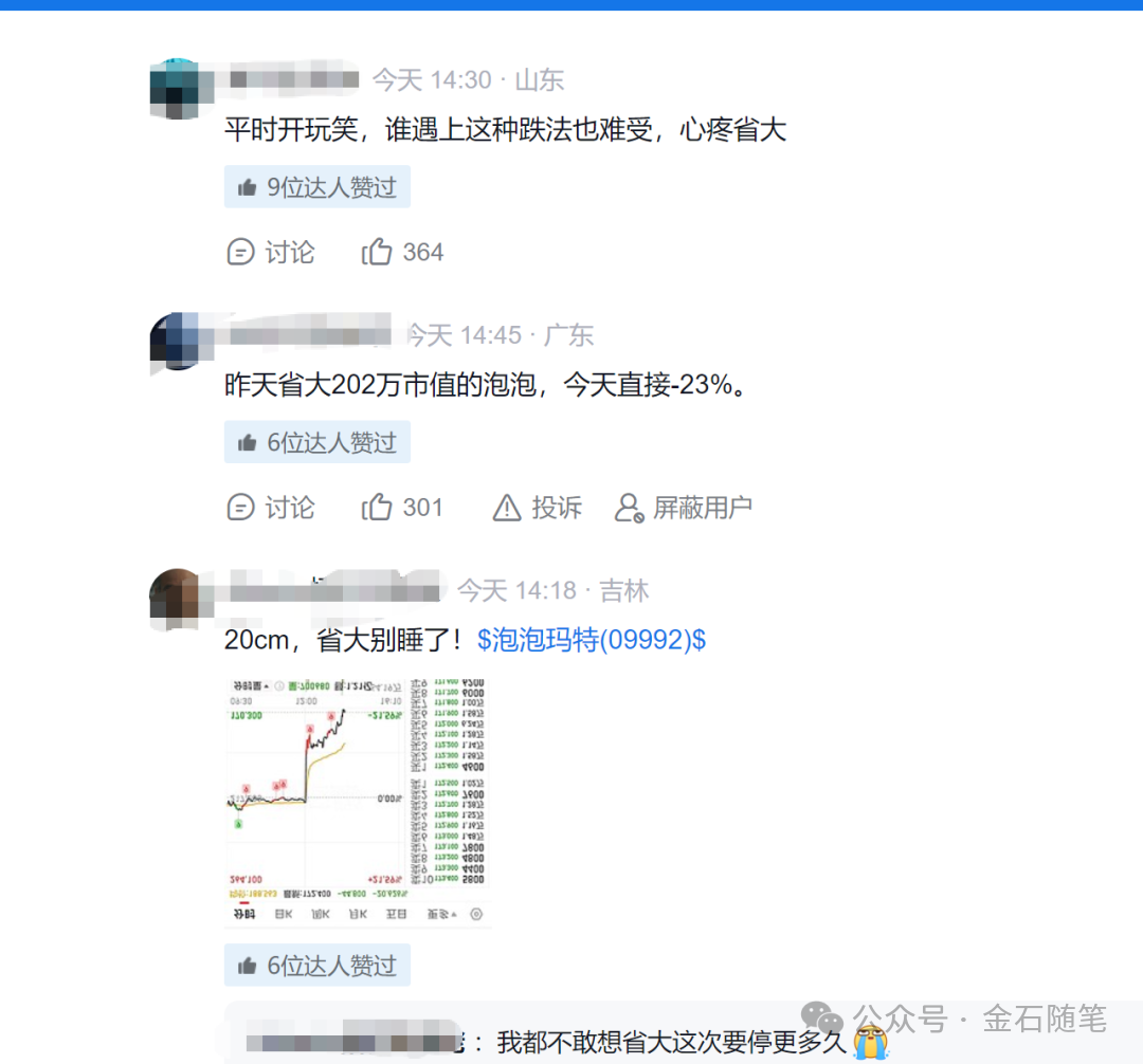 可能省大最大的错误就是“赌业绩”,在这风声鹤唳的行情下,任何公司的业绩都不值得赌,季前卖出才是王道。相较于以前的冷嘲热讽,如今粉丝们则是“平时开玩笑,谁遇上这种跌法也难受,心疼省大”